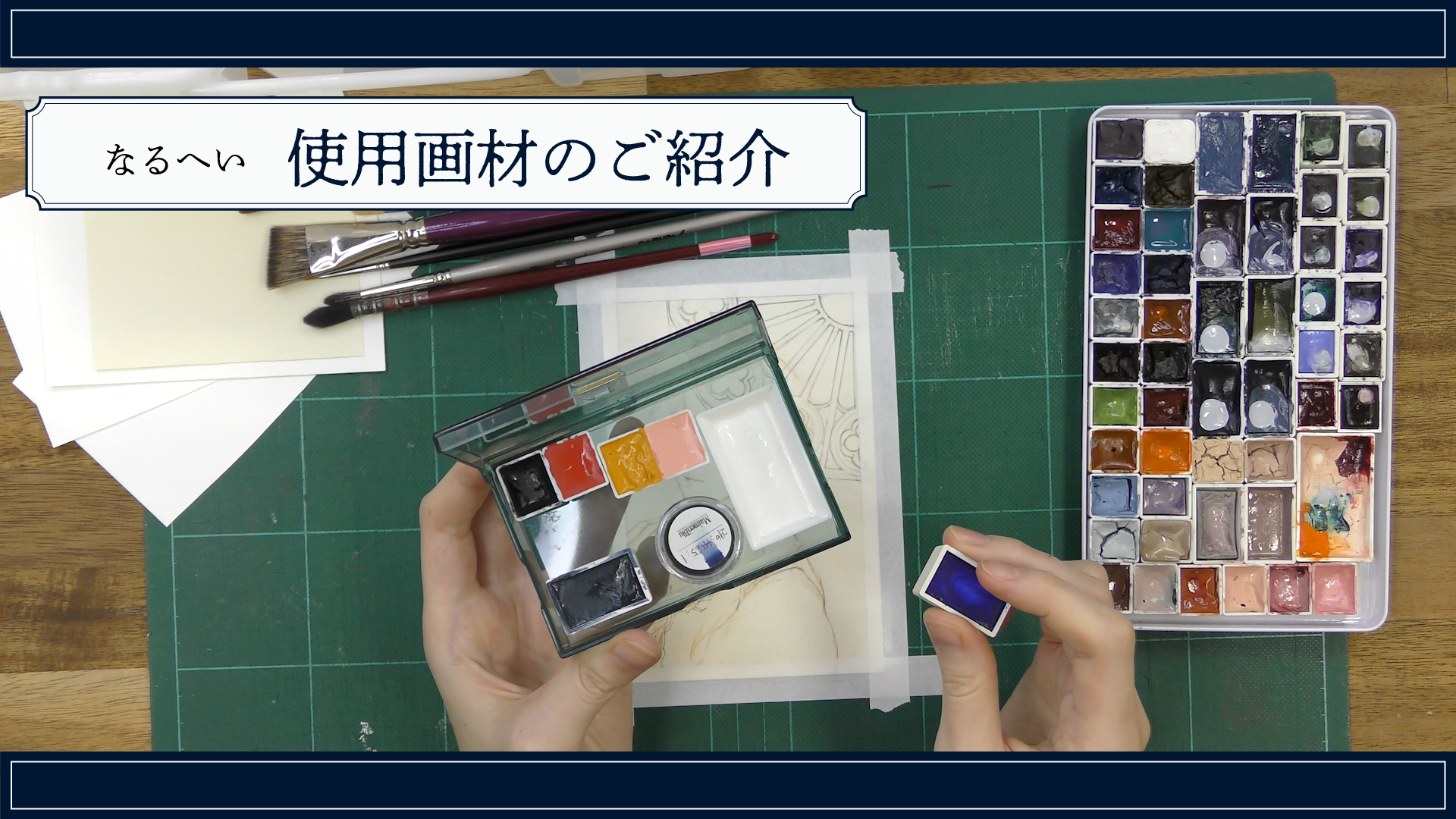 なるへい使用画材のご紹介 なるへい 再生時間:04分21秒 公開日:2026年2月24日 質問:質問を受け付けない 言語:日本語 字幕:字幕有り 年齢制限:年齢制限無し 価格:無料 視聴ページへ 内容紹介 道具 レビュー 内容紹介 イラストメイキング動画で使用する画材をご紹介しております。 必須ではございませんが、イラストメイキング動画を視聴する前に本動画をご覧いただくと、より楽しんでいただける内容になっております。 利用する道具 【水彩紙】 ヴィフアール水彩紙 はがきパック 中目 【S143VC】 30枚入 バンブー水彩紙<265g>(こちらの商品はメーカー在庫限りとなります。) ボッキングフォード水彩紙 ‐‐‐‐‐‐‐‐‐‐‐ 【筆】 小野月世オリジナル筆 Artis't Brush A-L (アンギュラー) 中国産の筆 文盛堂 ハイセーブル0号丸 名村大成堂 ルナール スケッチ 丸筆 [シルバーフォックス](4号を使用) 名村大成堂 HALF (丸筆)(2号を使用) 中里 水彩用筆(廃番) ‐‐‐‐‐‐‐‐‐‐‐ 【水彩絵具】 スーパービジョン 透明水彩 ポール・ルーベンス 透明水彩 ミジェロ 透明水彩 ホワイトナイツ 透明水彩 ローマンシュマル透明水彩 自作絵具 ハルモニア水彩絵具 4号(10ml) 18 フェアリーコンクパール ハルモニア水彩絵具 4号(10ml) 17 ゴールドシトリン ハルモニア水彩絵具 4号(10ml) 20 クランベリーパンチ ゼッキ 天然ウルトラマリン 数量限定品 絵墨 雪 6色セット マイメリブルー水彩絵具 296グリーンアース(12ml) マイメリブルー水彩絵具 440ウルトラマリンバイオレット(12ml) (仙台画材フェス 混色で作るマイメリブルー水彩分離色絵具づくり&全色お試し体験にて制作したイベント商品) ウィンザー&ニュートン水彩絵具 424 ウルトラマリンアッシュ (5ml)【リバイバルカラー】 ホルベイン透明水彩グラニュレーティングカラー5ml WG532 ヒスイカズラ ホルベイン透明水彩絵具 W353 グレイオブグレイ (5号) ‐‐‐‐‐‐‐‐‐‐‐ 【色鉛筆】 トンボ鉛筆 IROJITEN (色辞典) ステッドラー カラト アクェレル水彩色鉛筆 カランダッシュ クラシックライン クラシカラー 水溶性色鉛筆(廃番) ホルベイン アーチスト色鉛筆 (リンクが貼ってある道具を選択すると画材販売jpのページへ移動します)