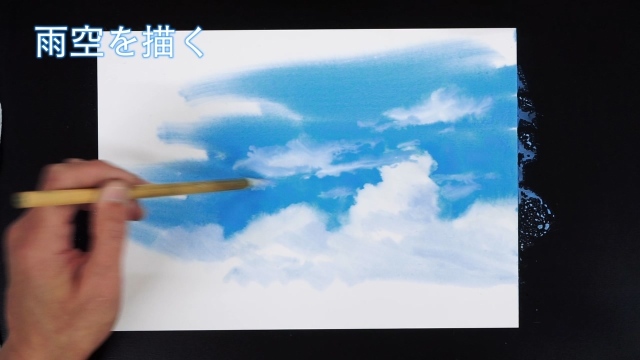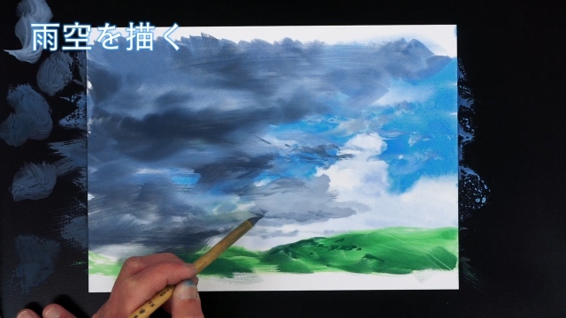 今回は重々しい雨雲が流れてくる空の作品です。