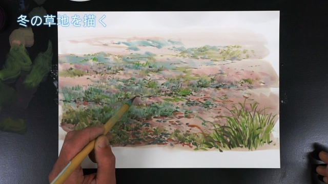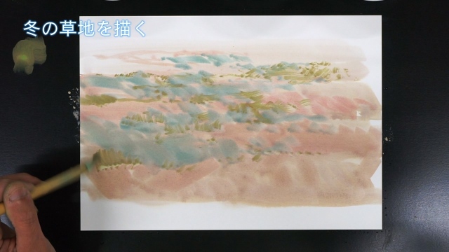 今回は「冬」です。寒々しく荒涼とした草地の制作過程をご覧ください。