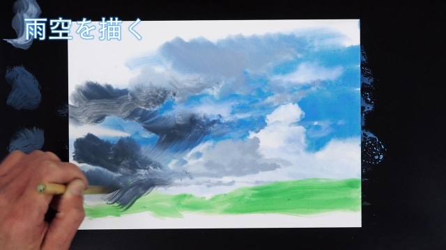 今回は重々しい雨雲が流れてくる空の作品です。
