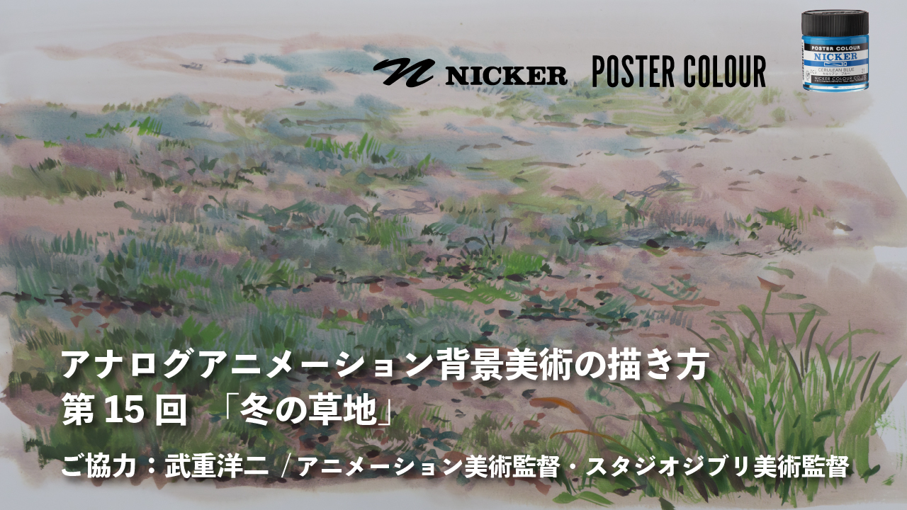 アニメーション背景美術を支え続けているニッカーポスターカラーを用いての手描き背景画の制作過程をご覧いただけます。