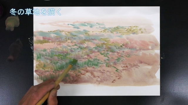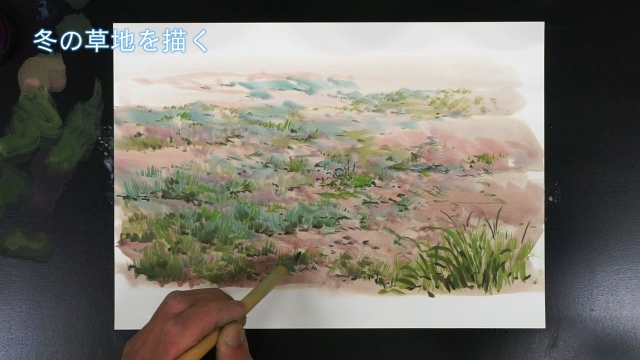 今回は「冬」です。寒々しく荒涼とした草地の制作過程をご覧ください。