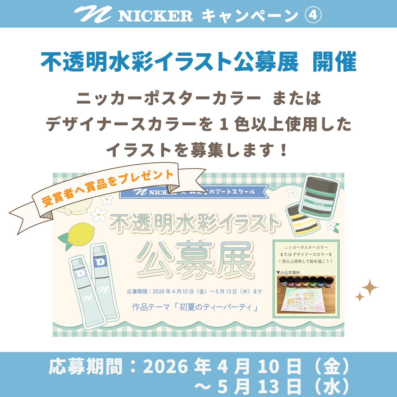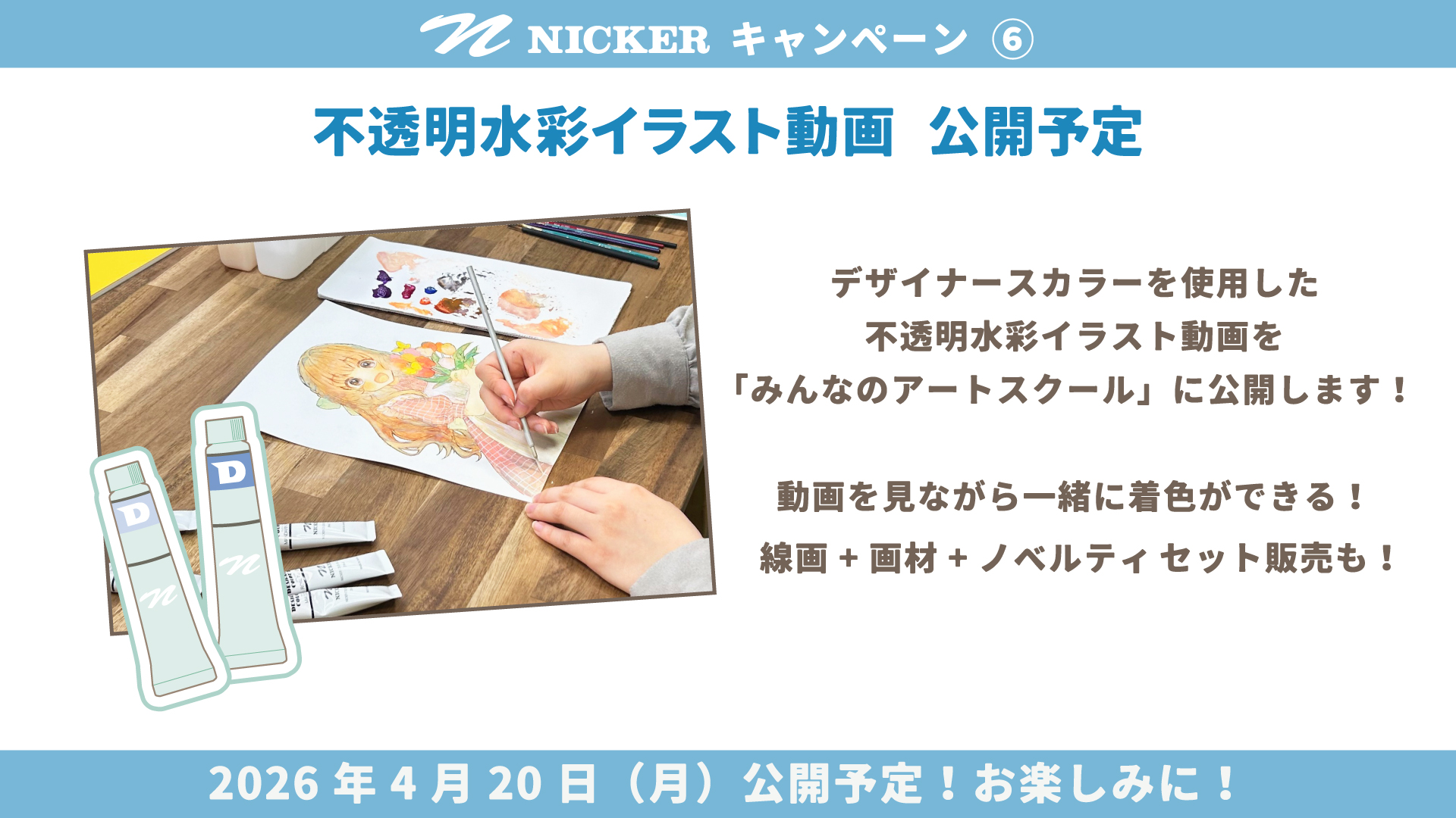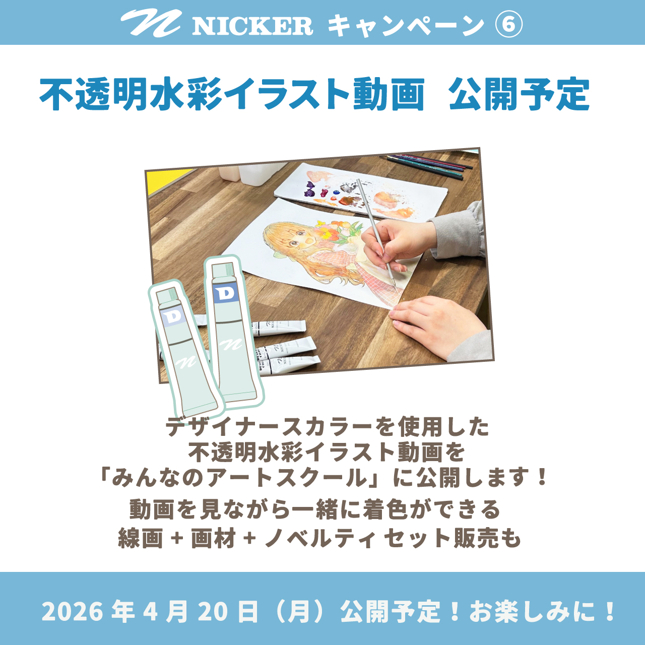 ニッカーデザイナースカラーを使用したイラスト動画を近日公開!ニッカー絵具限定のノベルティや動画で使用した線画がついた、お得な絵具セットを販売いたします。