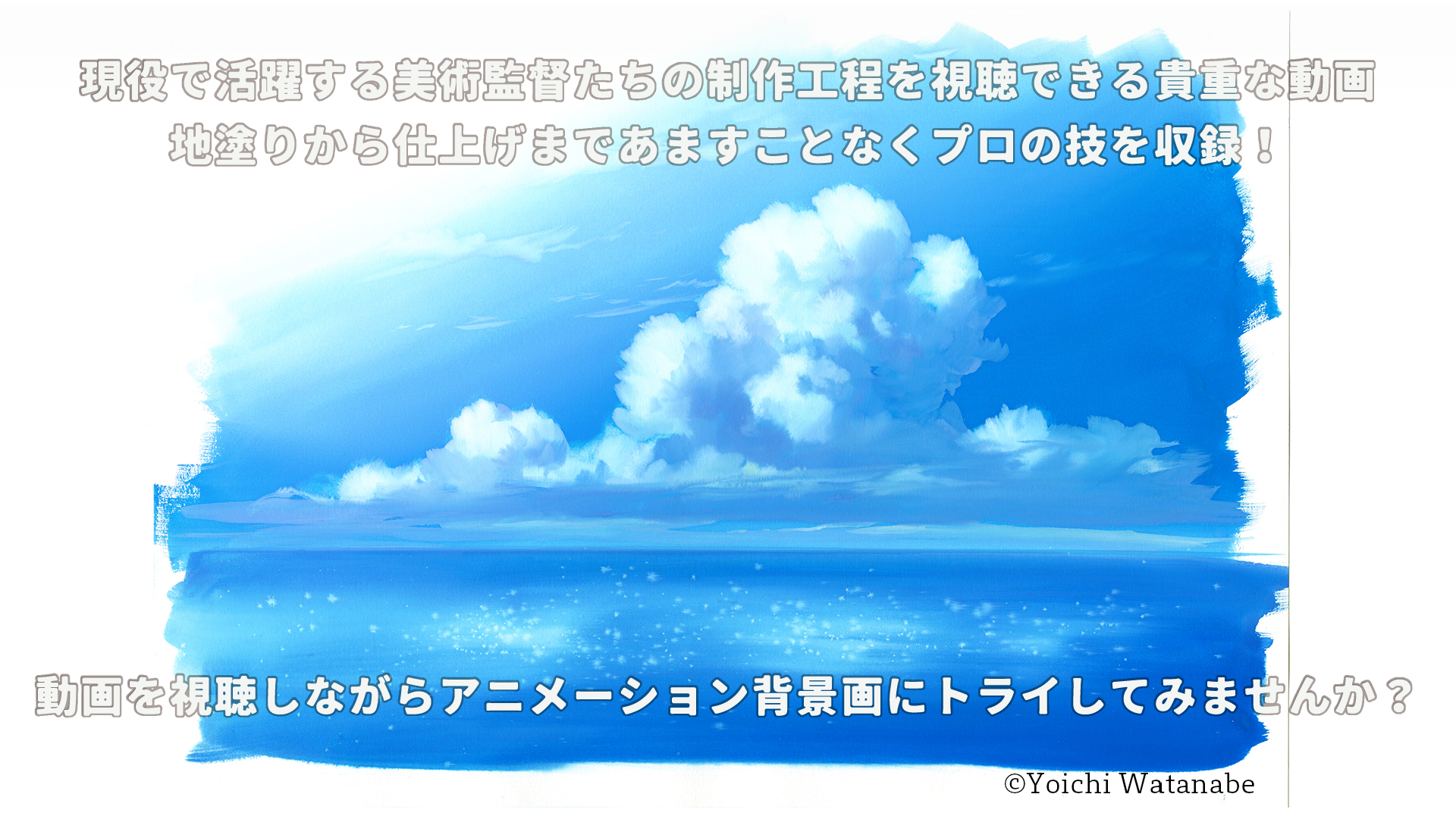 期間中、対象動画を3本以上ご購入の方全員に、武重洋二/アニメーション美術監督によるアニメーション背景画の描き方「アドリア海と空」完全版の動画をプレゼント!該当者へ視聴URLとパスワードをご案内いたします。